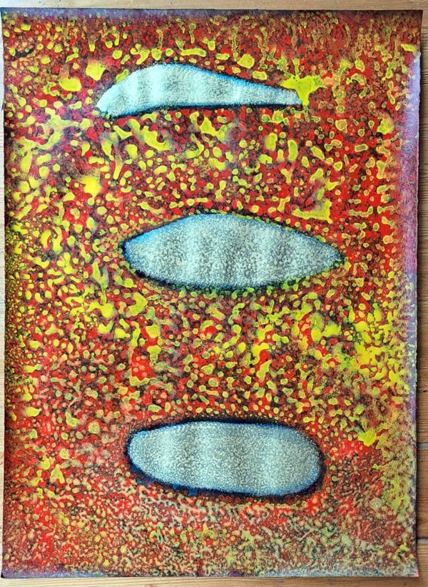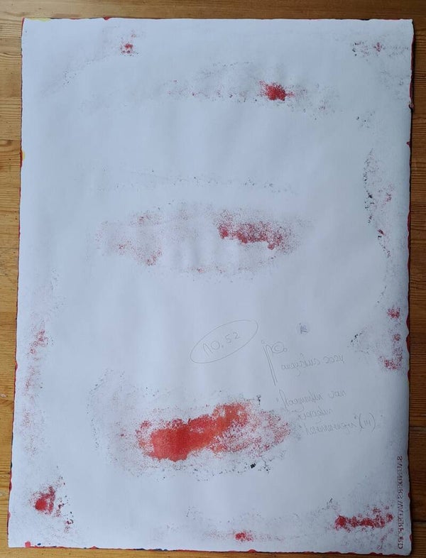 Achtergrond informatie: Het werk is geschilderd met vloeibare acryl - inkt (Golden high flow acrylics) op Saunders Waterford papier, 190 gram per vierkante meter, formaat een werk 56X76 cm.