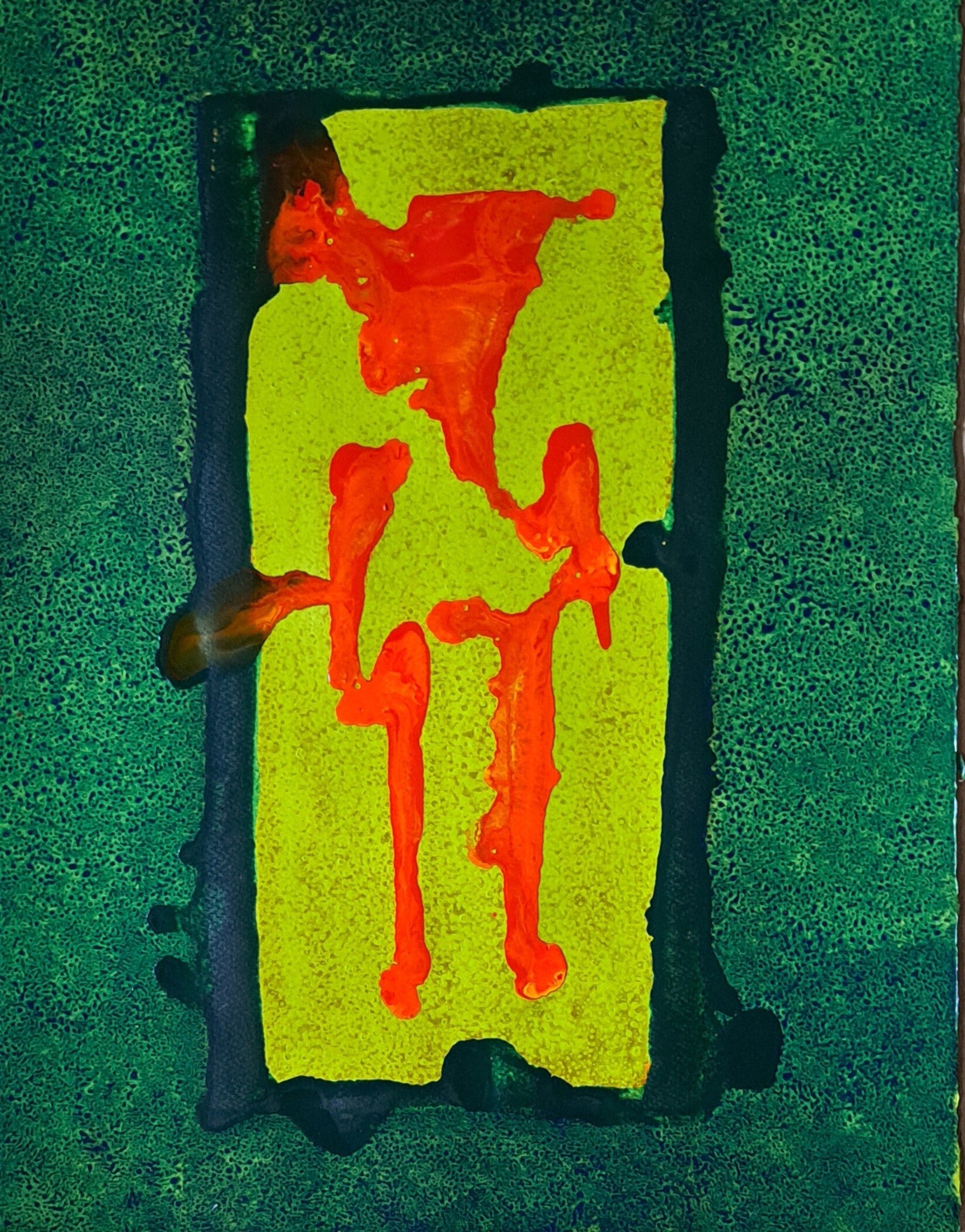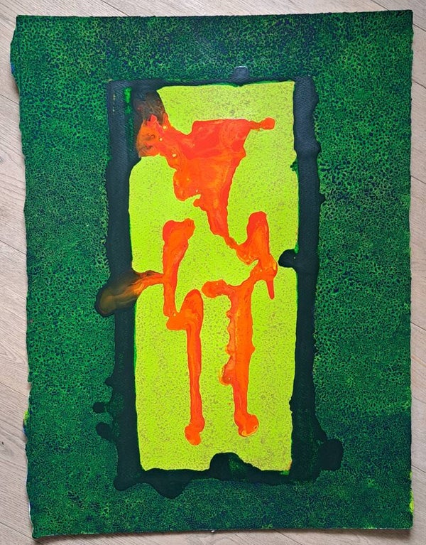 Achtergrond informatie: Het werk is geschilderd met vloeibare acryl - inkt (Golden high flow acrylics) op Saunders Waterford papier, 300 gram per vierkante meter, formaat een werk 56X76 cm.