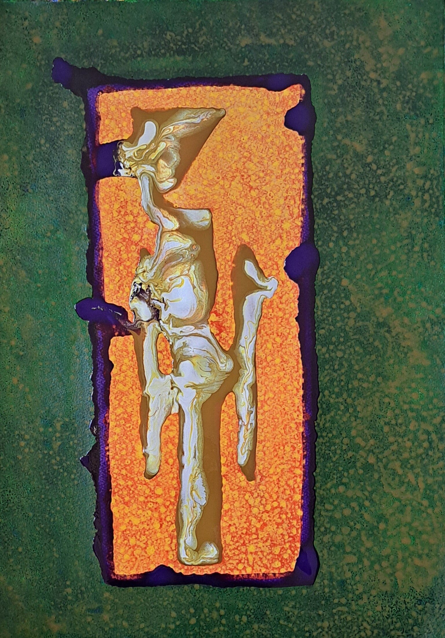 Achtergrond informatie: Het werk is geschilderd met vloeibare acryl - inkt (Golden high flow acrylics) op Saunders Waterford papier, 300 gram per vierkante meter, formaat een werk 56X76 cm.