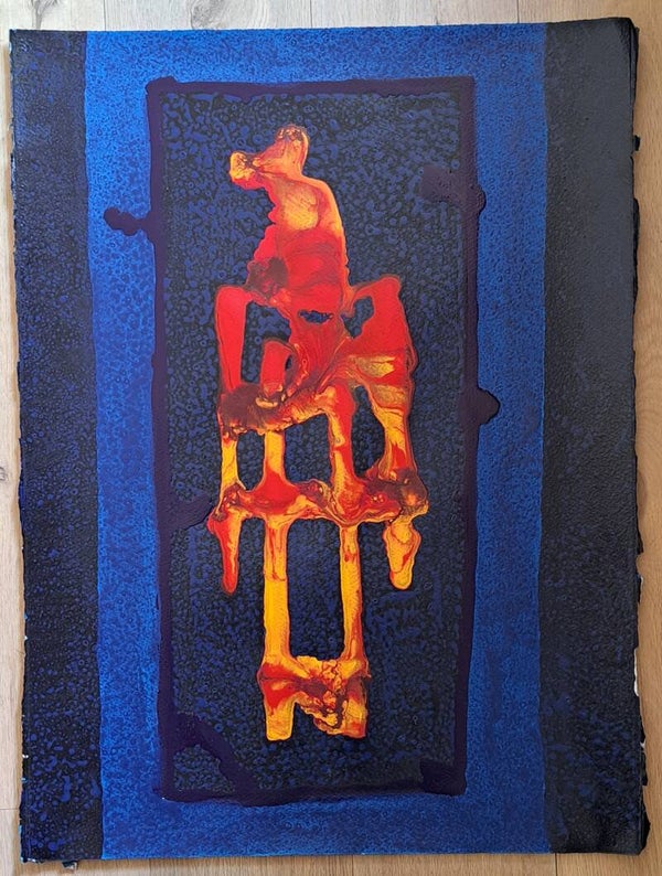 Achtergrond informatie: Het werk is geschilderd met vloeibare acryl - inkt (Golden high flow acrylics) op Saunders Waterford papier, 300 gram per vierkante meter, formaat een werk 56X76 cm.