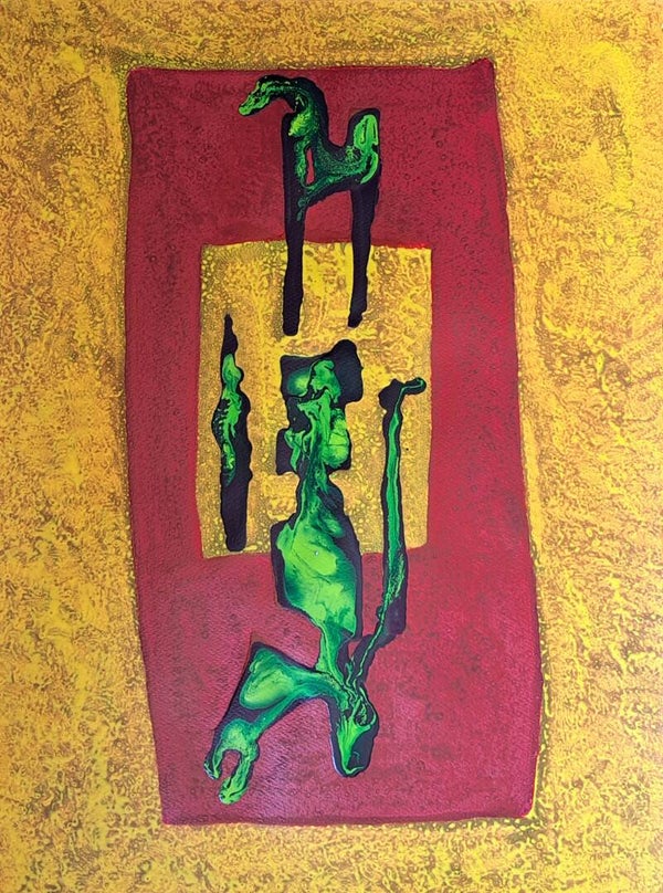 Achtergrond informatie: Het werk is geschilderd met vloeibare acryl - inkt (Golden high flow acrylics) op Saunders Waterford papier, 300 gram per vierkante meter, formaat een werk 56X76 cm.
