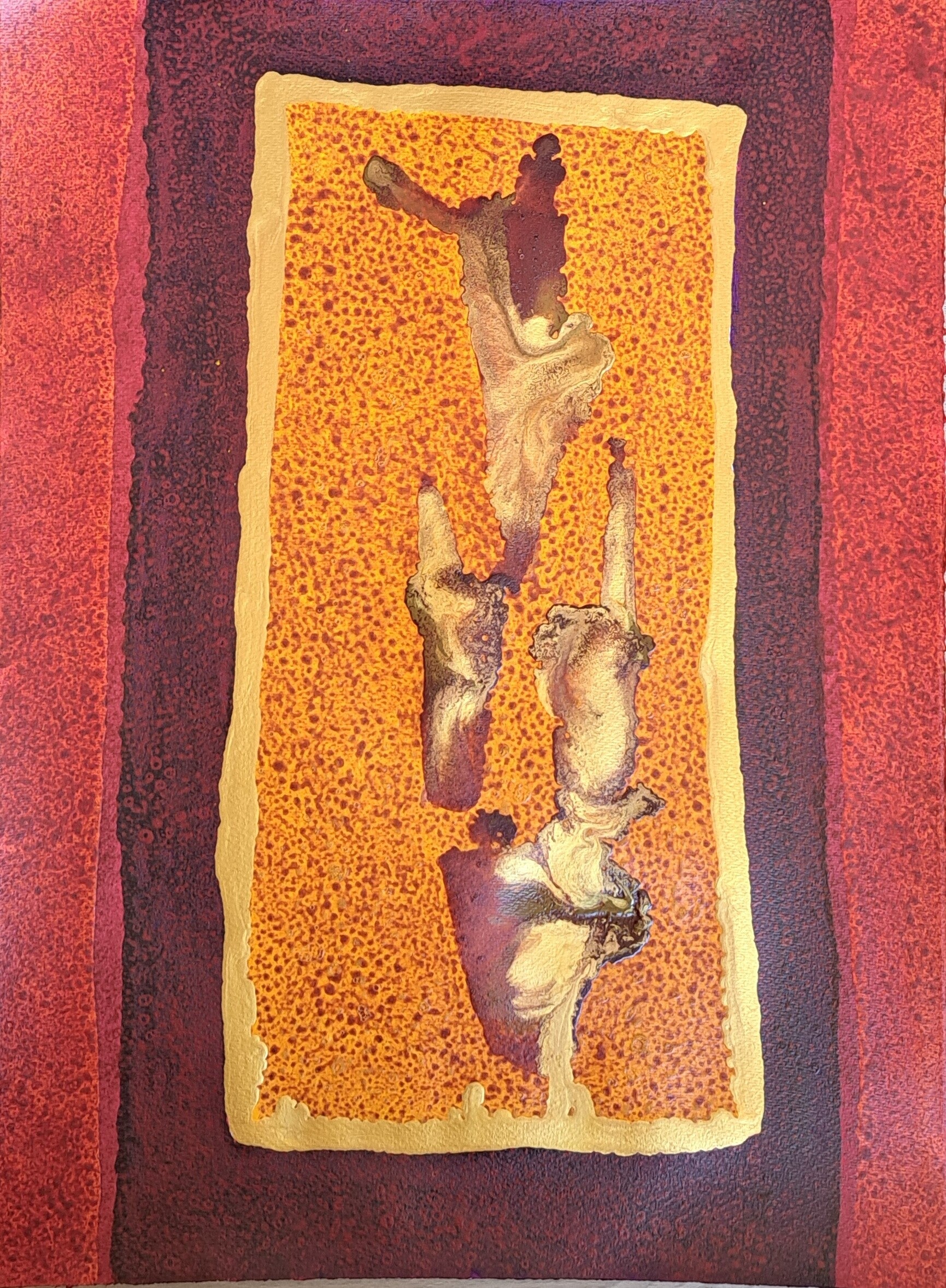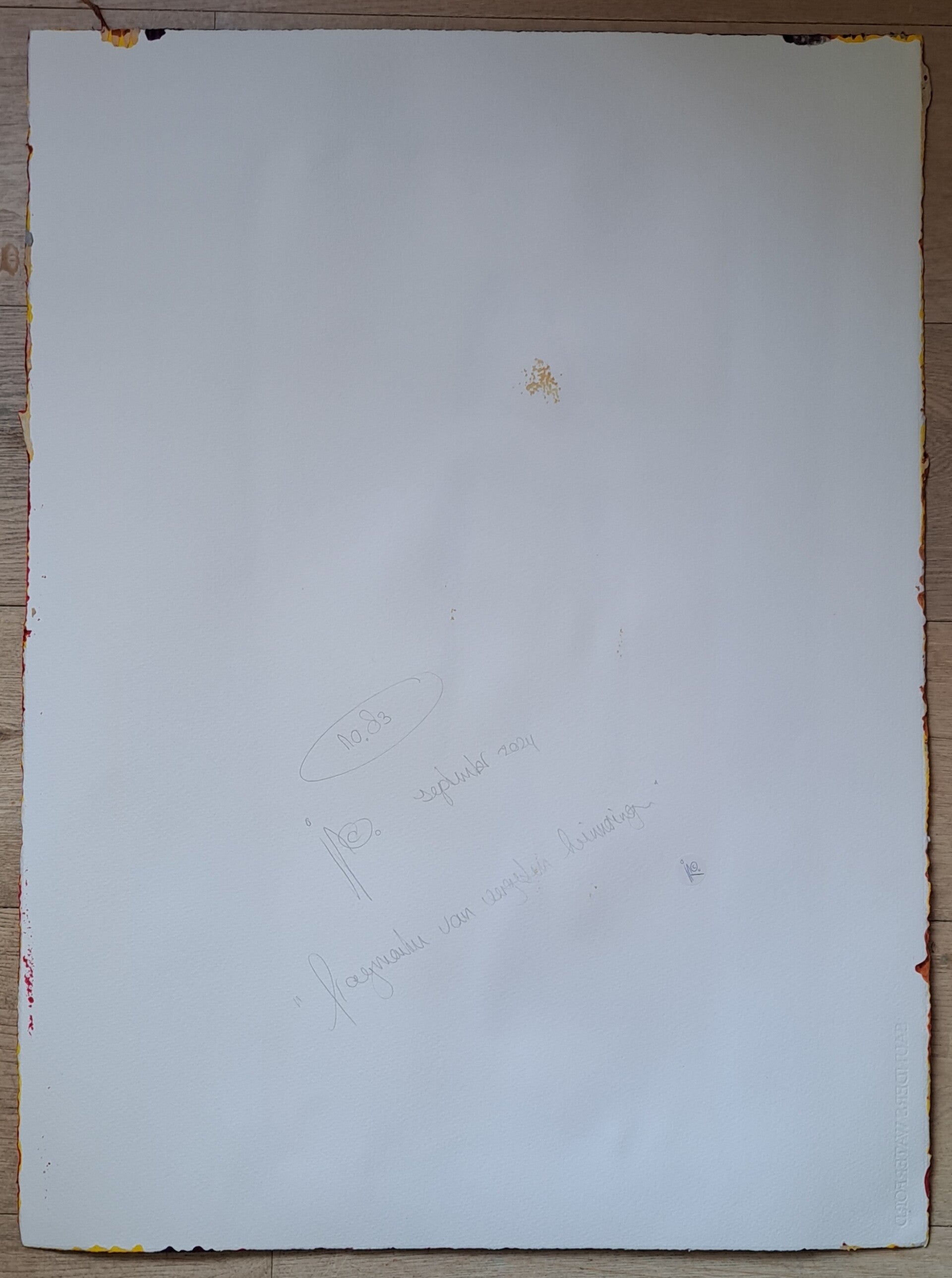 Achtergrond informatie: Het werk is geschilderd met vloeibare acryl - inkt (Golden high flow acrylics) op Saunders Waterford papier, 300 gram per vierkante meter, formaat een werk 56X76 cm.