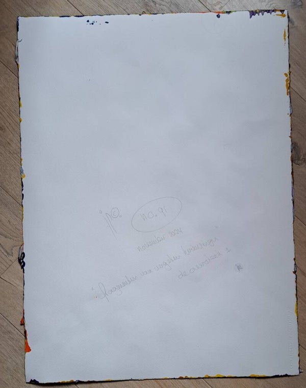 Achtergrond informatie: Het werk is geschilderd met vloeibare acryl - inkt (Golden high flow acrylics) op Saunders Waterford papier, 300 gram per vierkante meter, formaat een werk 56X76 cm.