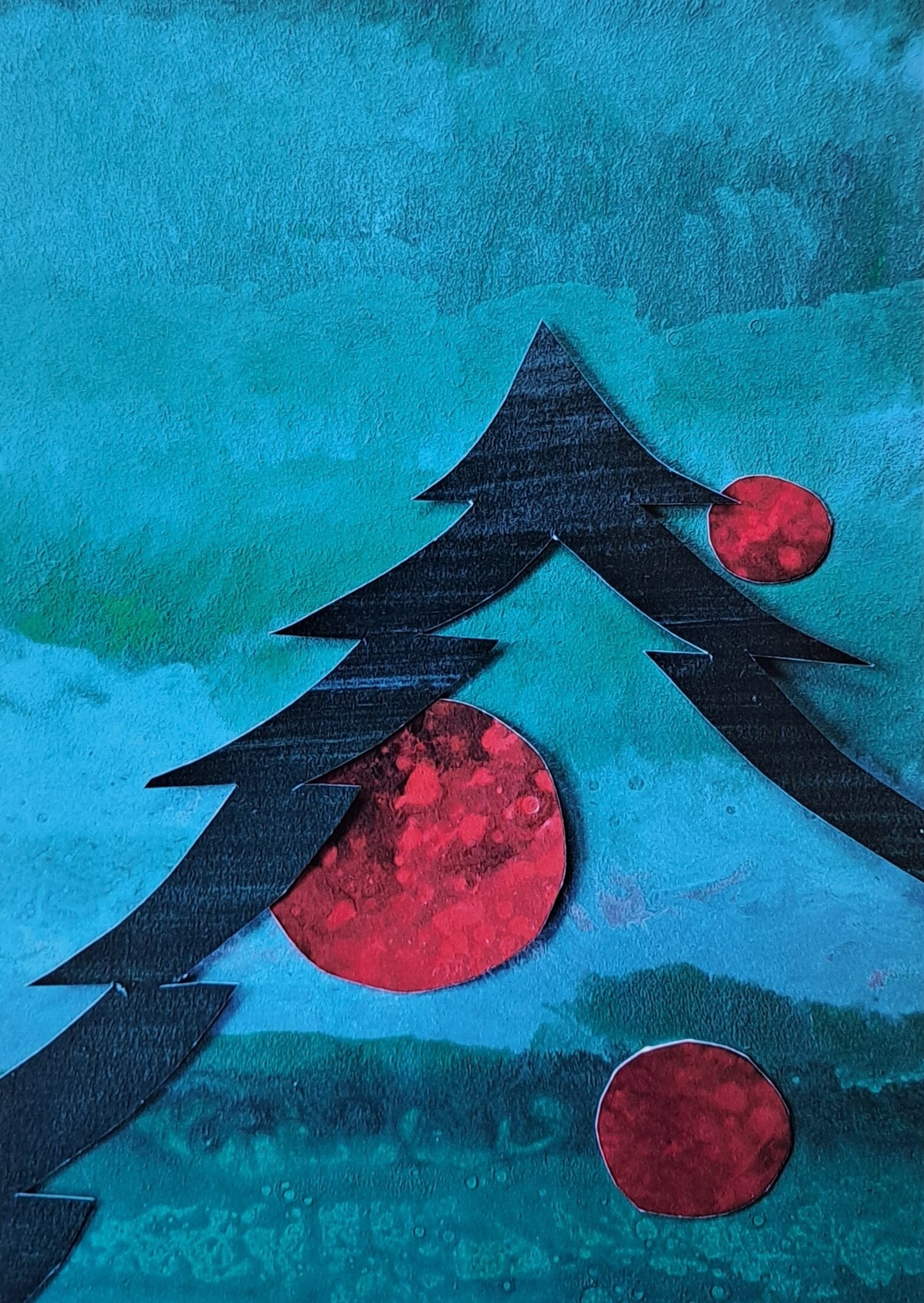 De kerst/nieuwjaarskaarten tonen allemaal een boodschap. De titel 'De ene boom' geeft een richting. Wat je er zelf van maakt is dat wat van belang is.
