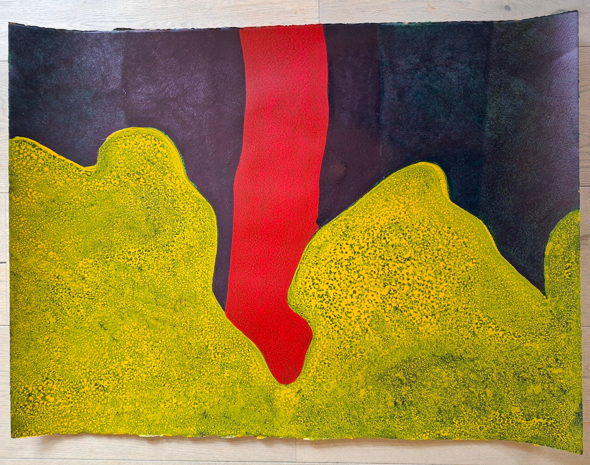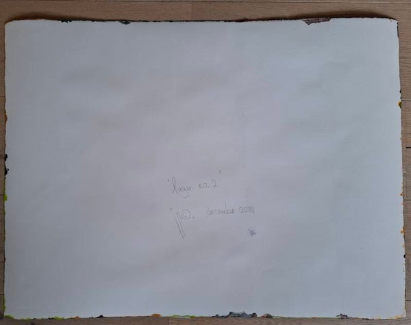 Achtergrond informatie: Het werk is geschilderd met vloeibare acryl - inkt (Golden high flow acrylics) laag op laag op laag op Saunders Waterford papier, 300 gram per vierkante meter, formaat een werk 56X76 cm.