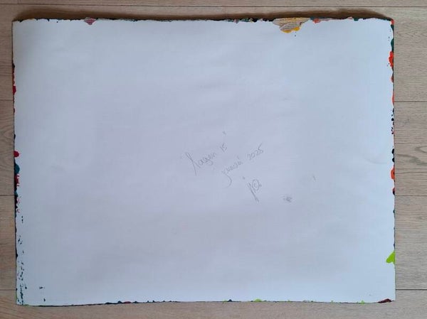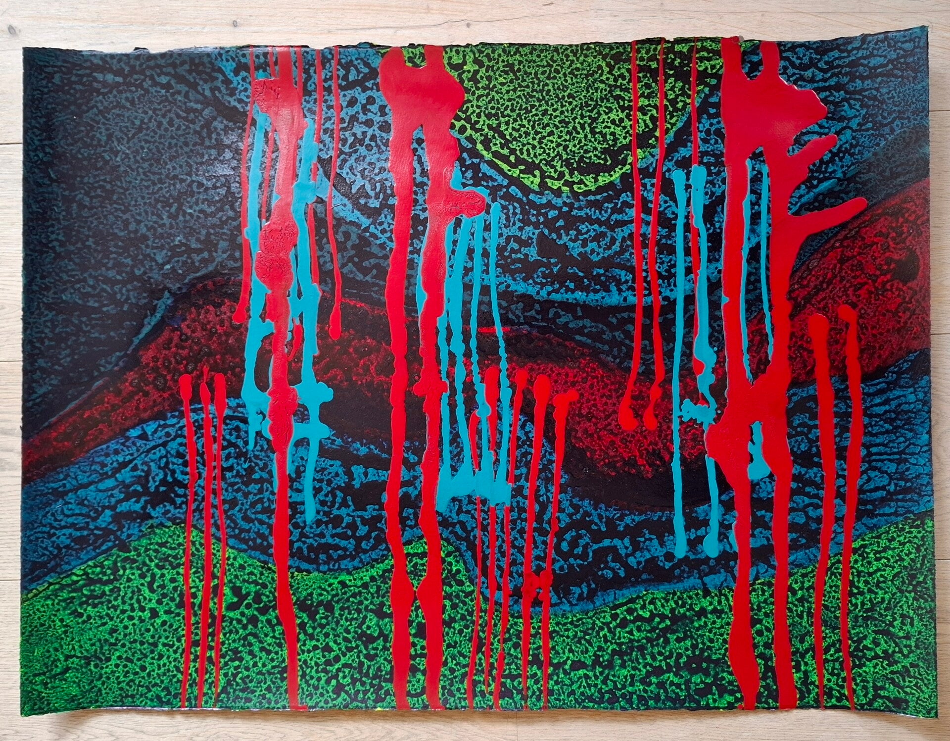Achtergrond informatie: Het werk is geschilderd met vloeibare acryl - inkt (Golden high flow acrylics) laag op laag op laag op Saunders Waterford papier, 300 gram per vierkante meter, formaat een werk 56X76 cm.