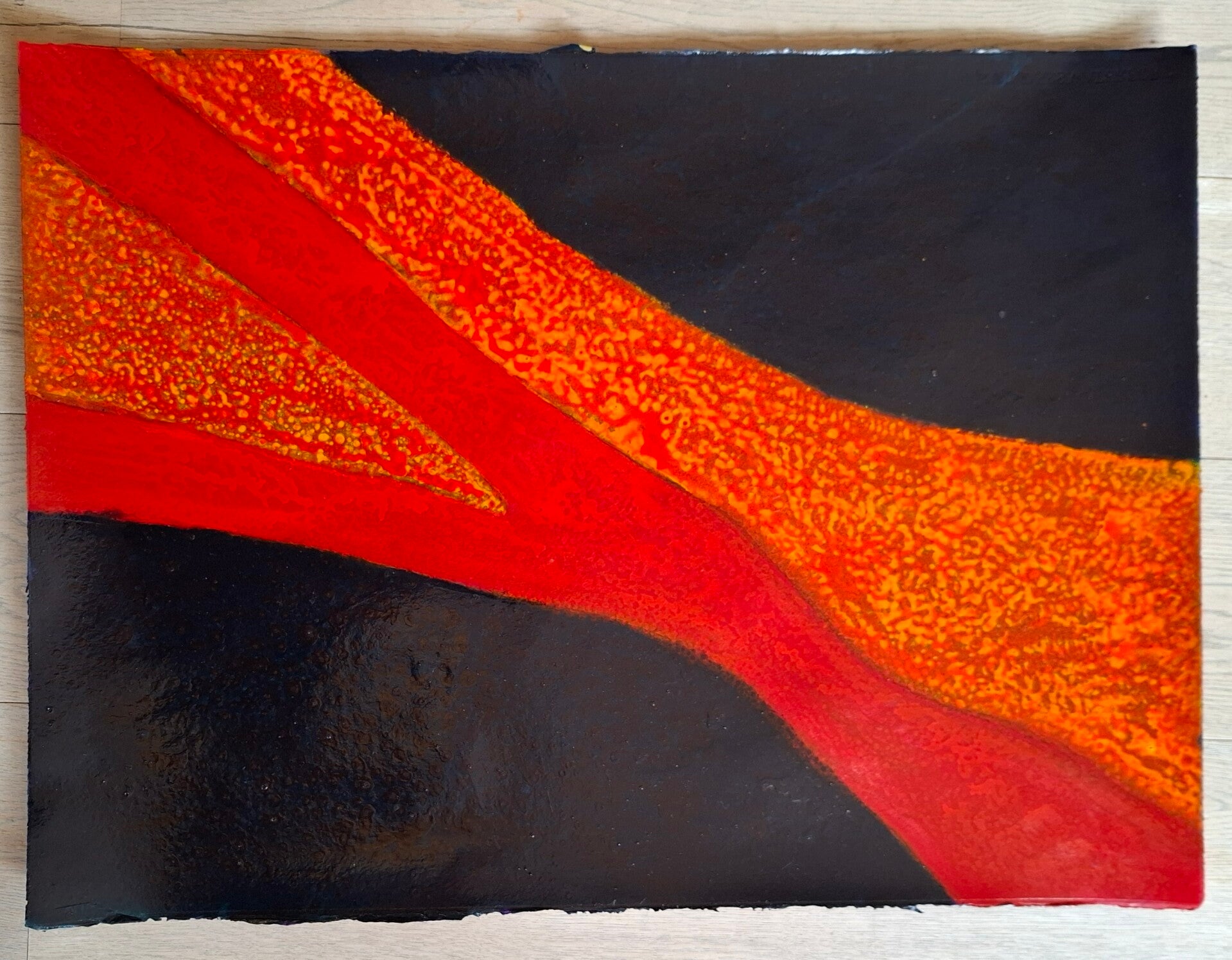 Achtergrond informatie: Het werk is geschilderd met vloeibare acryl - inkt (Golden high flow acrylics) laag op laag op laag op Saunders Waterford papier, 300 gram per vierkante meter, formaat een werk 56X76 cm.